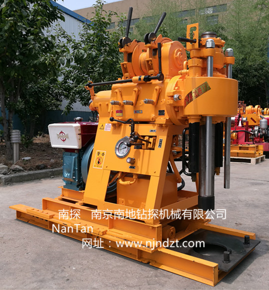 XY-200型钻机集合了目前市场流行的XY-1、XY-1B、XY-1A等小型钻机的主要功能和特点设计而成的。即采用XY-1的油压自动给进,XY-1B的大模数齿轮传动系统,XY-1A的宽范围转速的较大扭矩轻型回转钻机。 为使本机的适用性更广泛,满足不同用户的需求,推出移机型XY-200(YJ)型钻机(带移机功能)、增加了水泵(不带移机) 的XY-200-1型和带移机带水泵功能的XY-200-2型钻机。钻机、柴油机(或电动机)安装在同一底座上。钻进深度可达200米。
