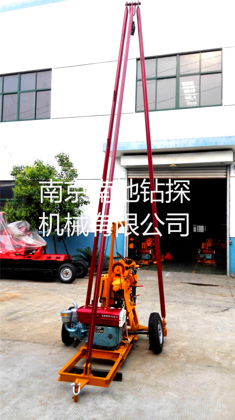 特点:利用卷扬机可上下汽车、自起落塔、爬坡和移孔,是目前较为科学、经济型钻塔,拖挂移孔方便、安全平稳。