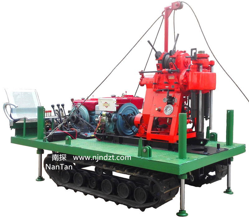 特点:自行行走、起落钻塔、上下汽车,使整机搬迁方便,钻机更加适合在城市、野外和泥地等复杂场地施工。减轻劳动强度、节省人力、提高钻探效率。