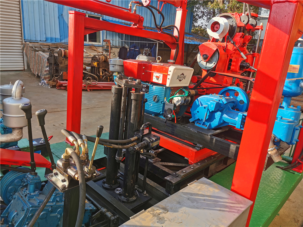 3. 配有孔底压力表指示压力,便于掌握孔内情况。4. 手柄集中,操作方便。 5. 钻机结构紧凑,体积小,重量轻,便于解体及搬运,适合于平原和山区工作。