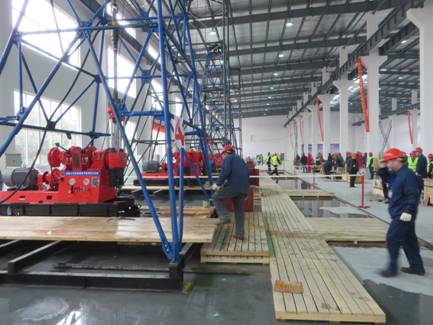 钻塔由底座、台板、塔身、天车、吊笼、导向轮,前、侧场房,绳索取芯滑轮九部分组成。台板由用户自备(泥浆池房、场房塔衣、泥浆池房衣各部分根据需要单独订购)。