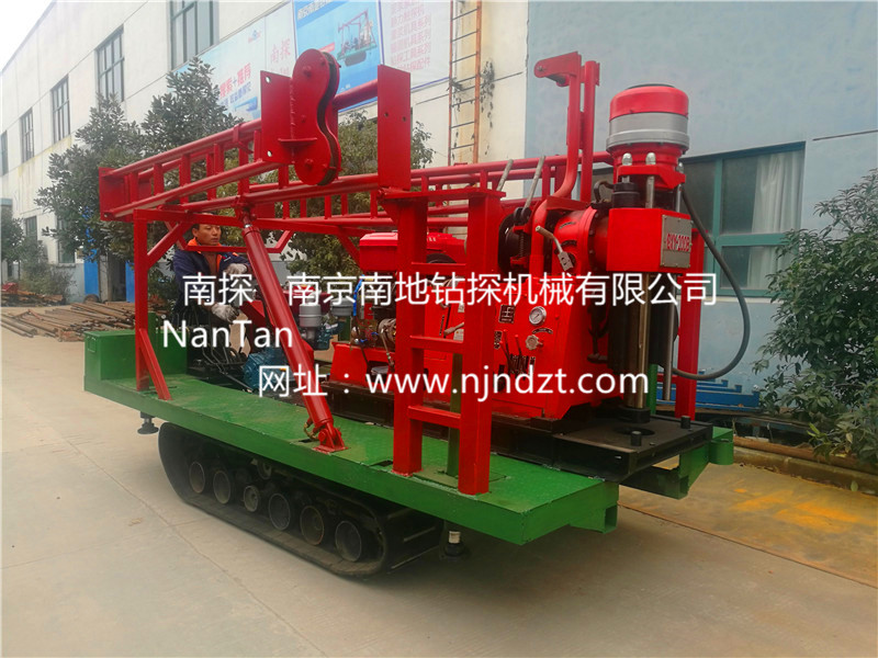 该履带底盘承载重量达4T,可以装载各种小型钻机,如:XY-1-1、XY-1、XY-1A、XY-1A(YJ)、XY-1A-4、XY-1A-5、XY-1B、XY-1B-1、XY-1B-2、XY-200、XY-200(YJ)、XY-200B、XY-200B-1、XY-200B-2、GXY-1系列、GXY-2Q、GXY-200B、GYQ-200、GYQ-200A、GK180、GXY-2K、GXY-2C等100-300米钻机,并可同时载BW160、BW160A、BW200或BW200A型泥浆泵,具有双塔架折叠式液压起落钻塔、行走方便等特点,广泛适用于公路、铁路、水电、桥梁、坝基等的工程地质勘察、地质岩芯钻探、物理勘察、小型灌浆孔、爆破孔、水井孔和空调孔的钻进。
