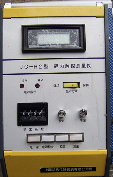 探杆:Φ25×1米(或Φ28*1米),优质合金无缝钢管。地锚直径:Φ200、250mm,带稳固可靠的新型地锚夹持器和地锚扳手,稳定可靠,一劳永逸。配用探头:10cm2单桥探头、10cm2双桥探头、电测十字板探头(50×100×2mm)。十字板剪切范围:0~128 KPa。配用电缆线:四芯屏蔽电缆线、八芯屏蔽电缆线。链条:小传动链条:10A—1,68节2条,大传动链条:12A—1,148节2条。仪器:JC-H2型静力触探仪(人工记录仪,单桥探头专用);KE-2101型静探微机(自动记录仪,带U盘,单桥探头专用);KE-2103型静探微机(自动记录仪,带U盘,单、双桥探头都可以)。主机重量:60kg.