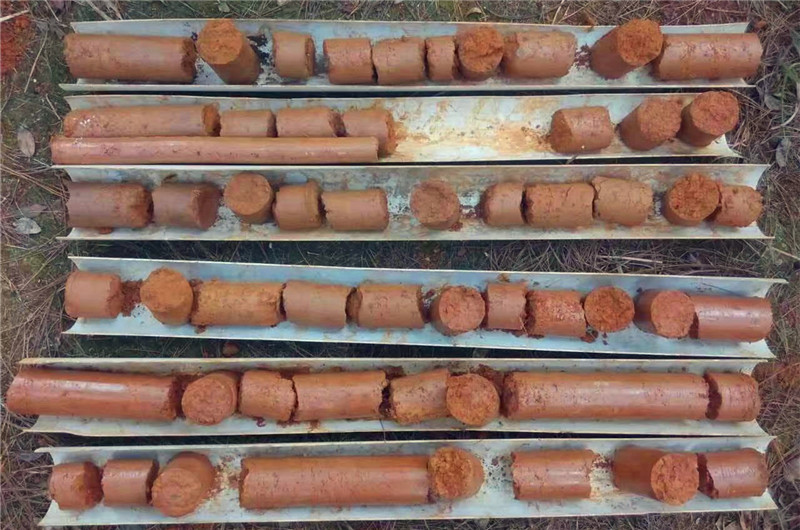 钻进过程中提升和给进是依靠手摇卷扬装置配套提引器或加压手轮通过链轮链条来完成,大大提高了钻机提升和加压力。钻进过程中,利用泥浆泵冷却回转器和钻头,并携带土岩屑返回地表。随着钻具向地下延伸,所需要的土岩样不断进入到岩心管内,当土岩样达到预定深度后,便可以将钻杆取出,实现了单回次取样作业。重复以上步骤,直至全孔取样完成。