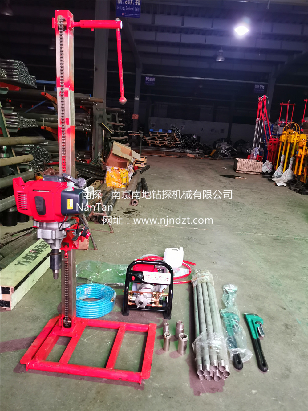 可以2人操作的取芯钻机!钻探深度可达20米!采用轻便的汽油机作为动力,塔式轻便实用,搬迁十分便利,满足野外车辆无法进入地区时用;钻机操作简单,易学易懂。可实现合金、金刚石钻头钻进及麻花螺旋钻进和不取芯三叶合金钻头、复合片不取芯钻头引孔钻进的需求。