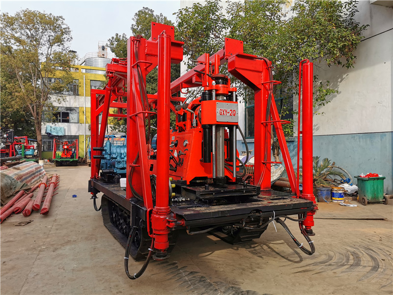 一、适用范围:该履带底盘承载重量达4T,可以装载各种小型钻机,如:XY-1-1、XY-1、XY-1A、XY-1A(YJ)、XY-1A-4、XY-1A-5、XY-1B、XY-200、XY-200(YJ)、XY-200-1、XY-200-2、XY-200A、XY-200A(YJ)、XY-200A-1、XY-200A-2、XY-200B、GXY-1、GXY-1A、GXY-1B、GXY-1C、GXY-2K、GXY-2Q、GXY-200B、GYQ-200、GYQ-200A、GXY-2C、GK180、KD100-4、KD150等,并可同时装载BW160、BW160A、BW200A、BW250型泥浆泵和5T液压静探机,具有双液压自动起落伸缩式钻塔、行走方便等特点,广泛适用于公路、铁路、水电、桥梁、坝基等的工程地质勘察、地质岩芯钻探、物理勘察、小型灌浆孔、爆破孔、水井孔和空调孔的钻进。可在海滩、河滩、沙地、水田等恶劣环境开展静探作业,结冰道路仍可行走。