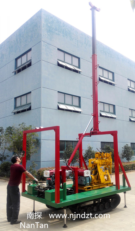 4. 手柄集中,操作方便。 5. 钻机结构紧凑,体积小,重量轻,便于解体及搬运,适合于平原和山区工作。