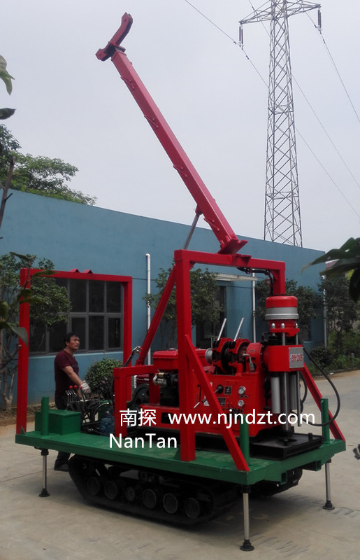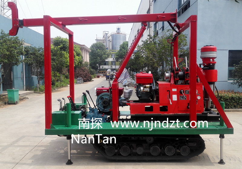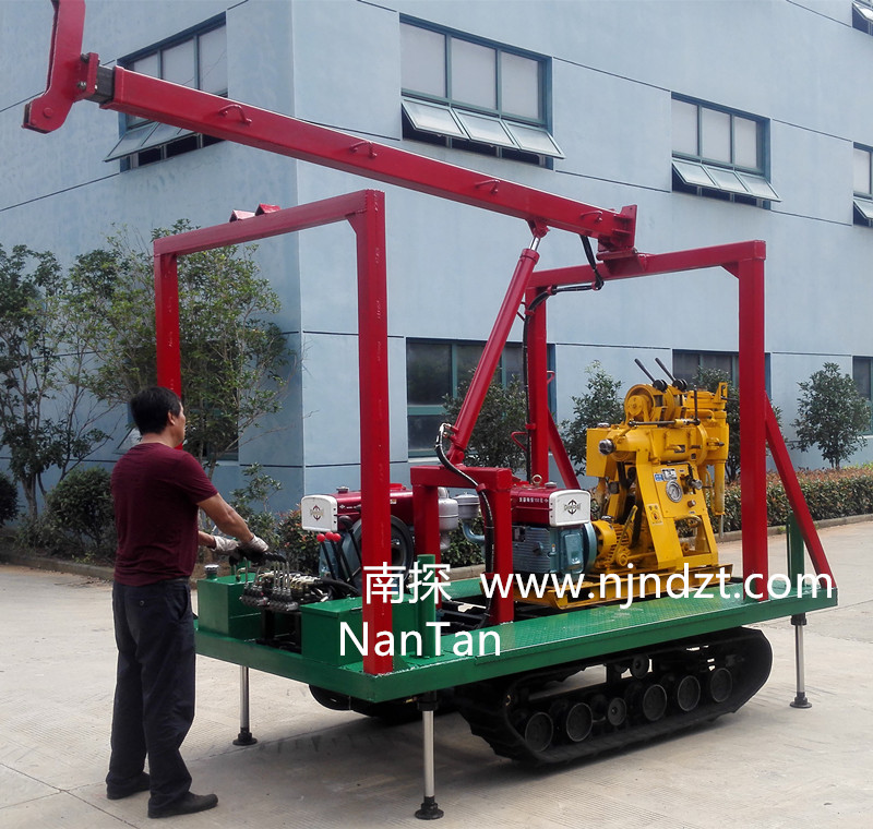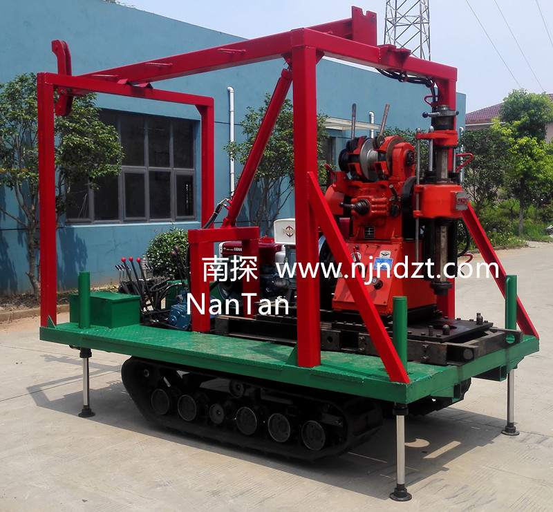 该履带底盘承载重量达4T,可以装载各种小型钻机,如:XY-1-1、XY-1、XY-1A、XY-1A(YJ)、XY-1A-4、XY-1A-5、XY-1B、XY-1B-1、XY-1B-2、XY-200、XY-200(YJ)、XY-200B、XY-200B-1、XY-200B-2、GXY-1系列、GXY-2Q、GXY-200B、GYQ-200、GYQ-200A、GK180、GXY-2K、GXY-2C等100-300米钻机,并可同时载BW160、BW160A、BW200或BW200A型泥浆泵,具有可调伸缩式液压起落钻塔、行走方便等特点,广泛适用于公路、铁路、水电、桥梁、坝基等的工程地质勘察、地质岩芯钻探、物理勘察、小型灌浆孔、爆破孔、水井孔和空调孔的钻进。