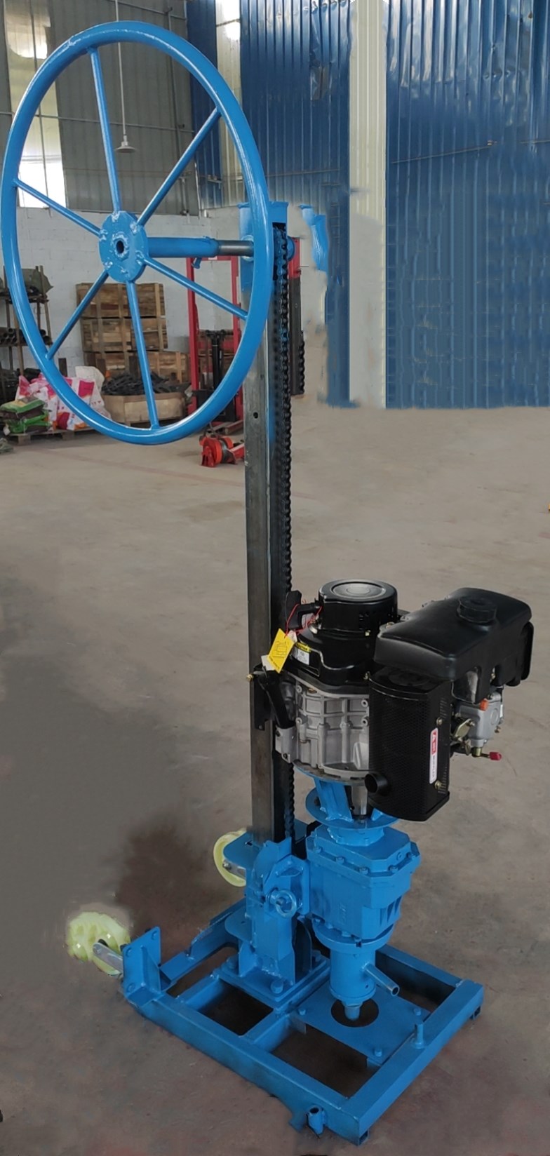 1、取样钻机:含汽油发动机、钻进装置、链条式支架、转向盘。